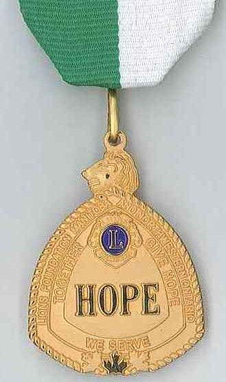 The Hope Medal is awarded to an individual or group (Lion or non-Lion) who demonstrates outstanding charitable achievement in their community.